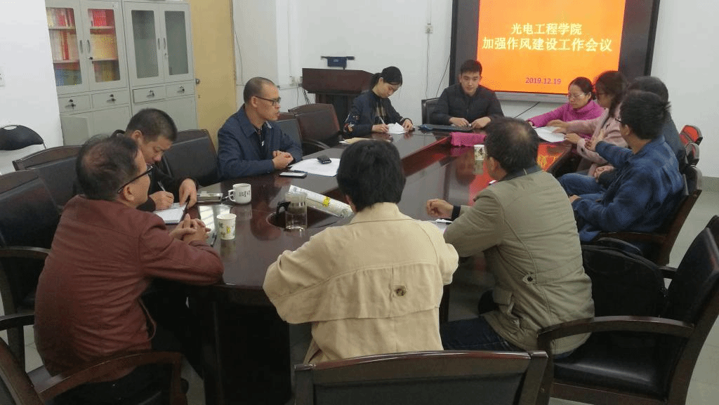 12月19日下午,公司在东校区第一教学楼1112室召开加强作风建设工作会议。学院领导、各系部主任、办公室工作人员和辅导员参加会议。